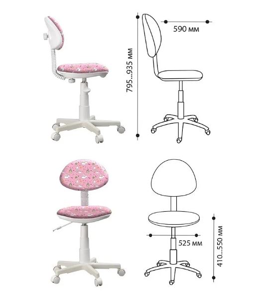 —Кресло Логика (пластик WH,Ткань,KiD'S, №21(единорожки),О, PL 540, б/подл, ролик белый)