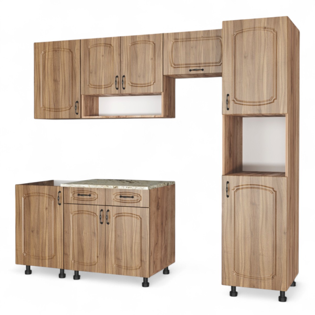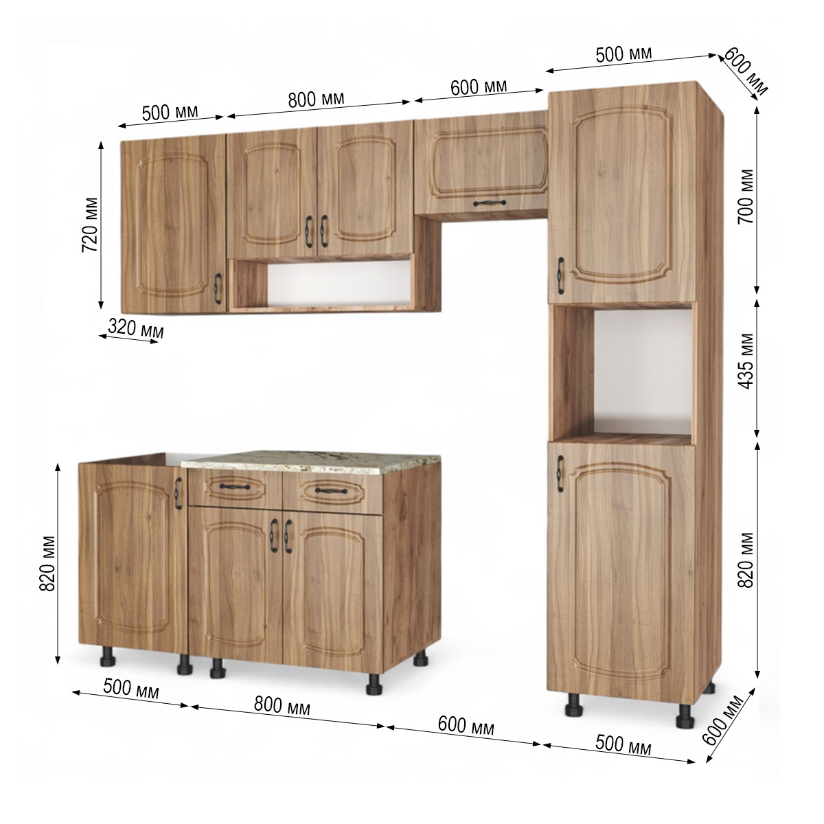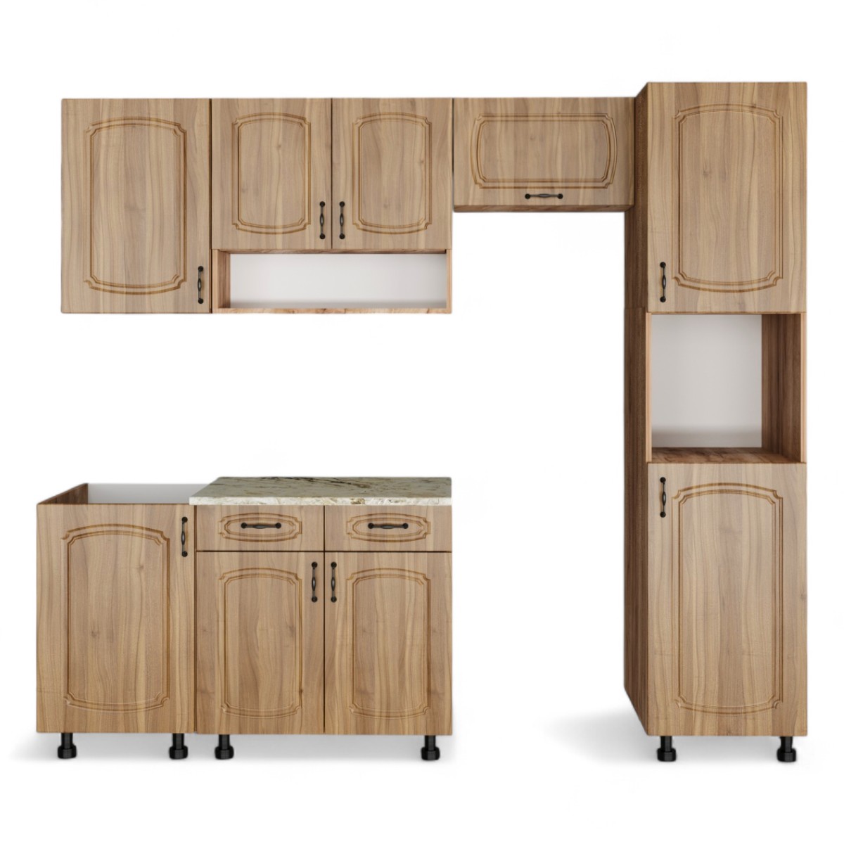 —Кухонный гарнитур №4 Дуб крафт табачн./Орех антик (столеш Версаль+Сушка+планка) 1,8м
