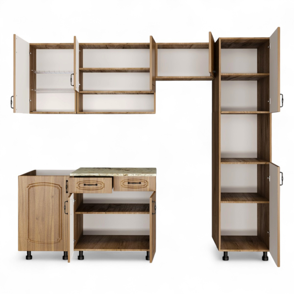 Кухонный гарнитур №4 Дуб крафт табачн./Орех антик (столеш Версаль+Сушка+планка) 1,8м
