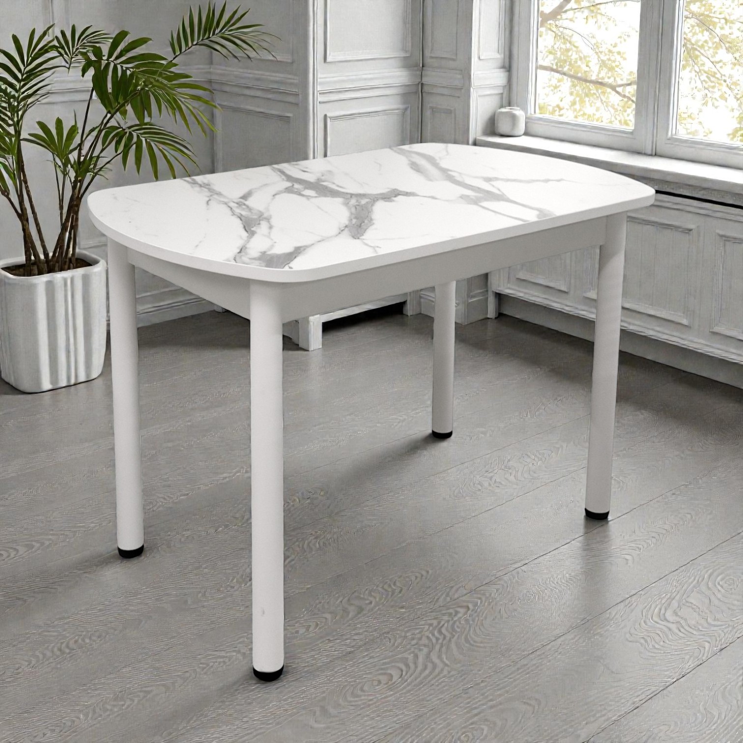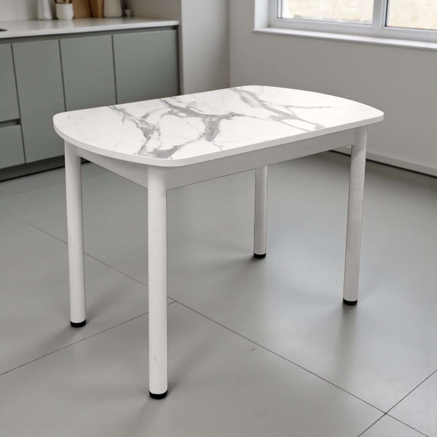 —Стол Фаворит 1100*700 Пластик Мрамор белый,(B5)/ЛДСП Белый+опоры(Белый)