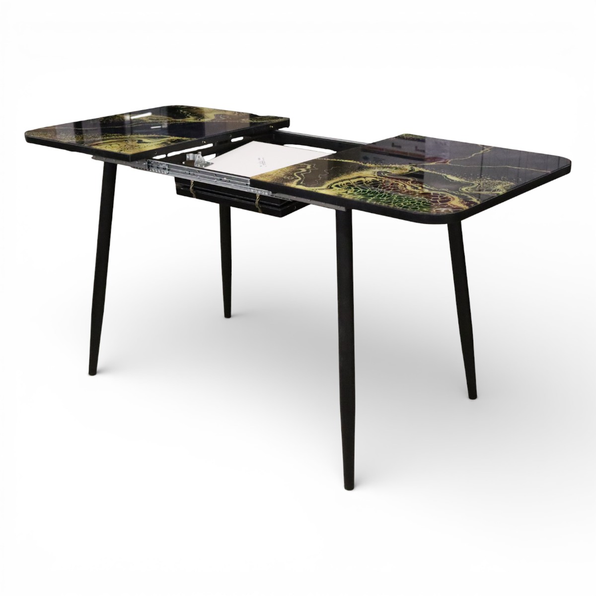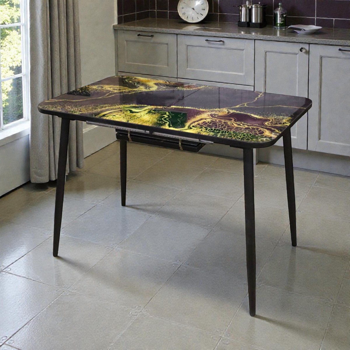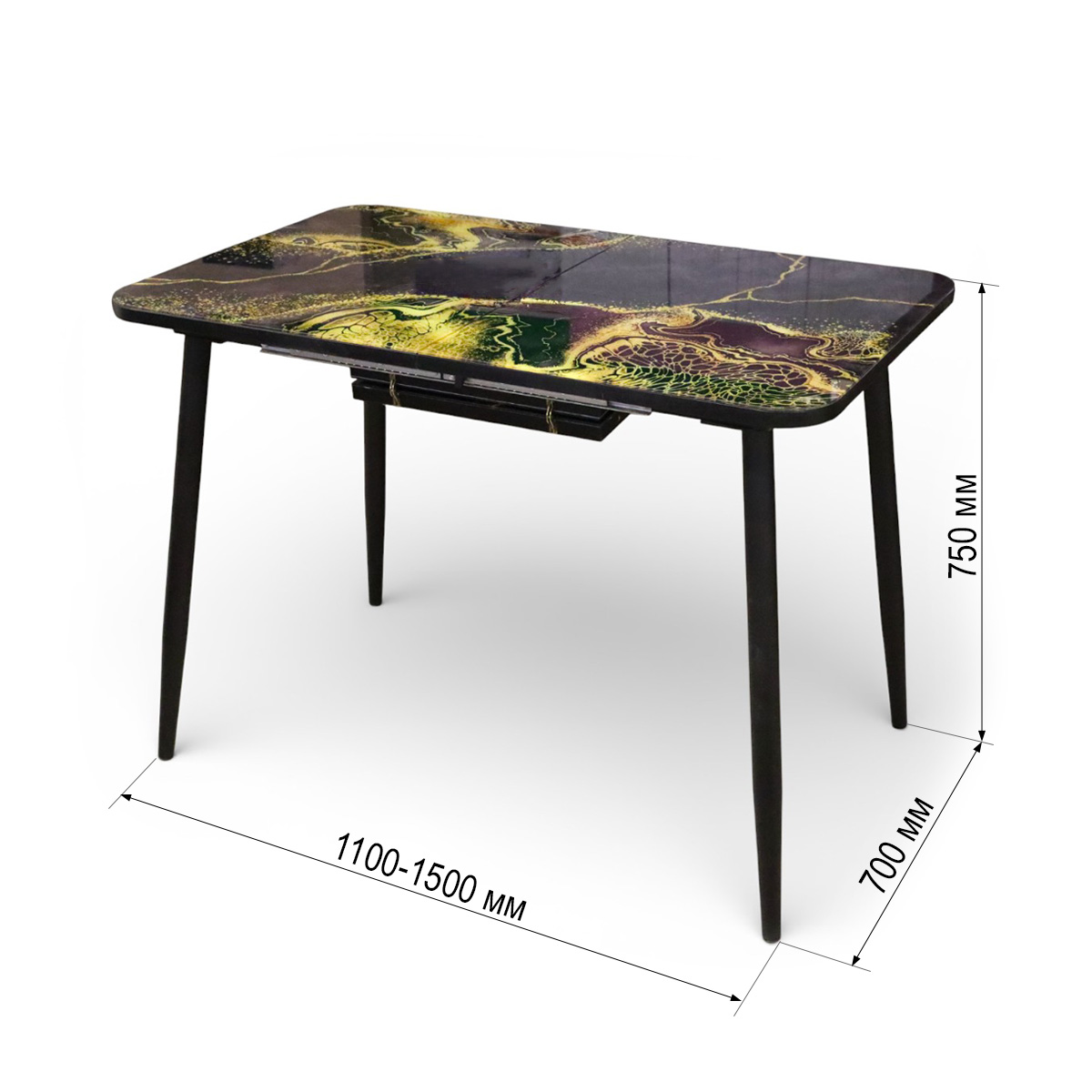 —Стол обеденный Турин 110(+40)*70 Абстракция / черный