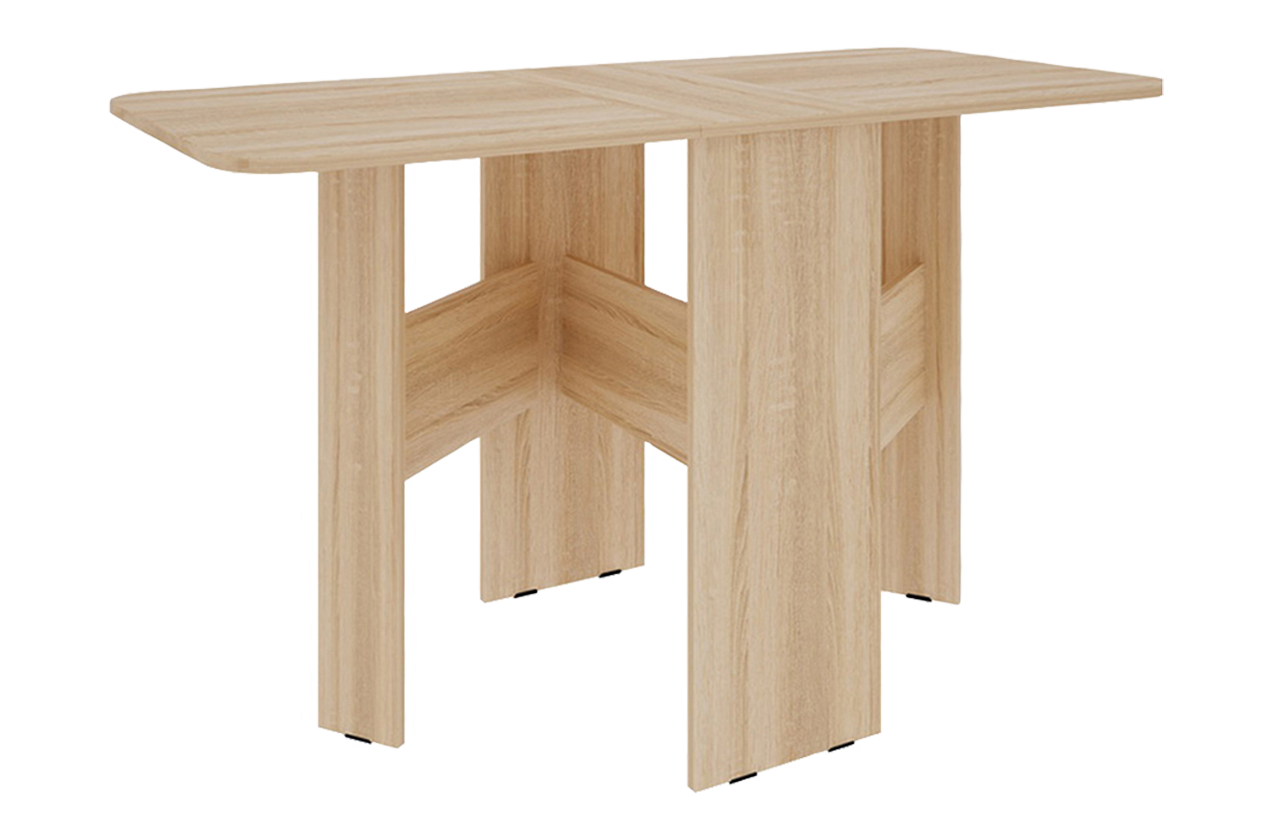Все домохозяйки знают, что стол-книжка – вещь нужная в любом доме. Он легко станет как письменным столом, так и обеденным, а к приходу гостей его можно разложить полностью и места хватит всем. В сложенном виде он всего 310 мм в ширину, а в разложенном столешница 1580 мм. По бокам столешницы две устойчивые ножки, которые не помешают сидящим за столом и хорошо закрепят столешницу.