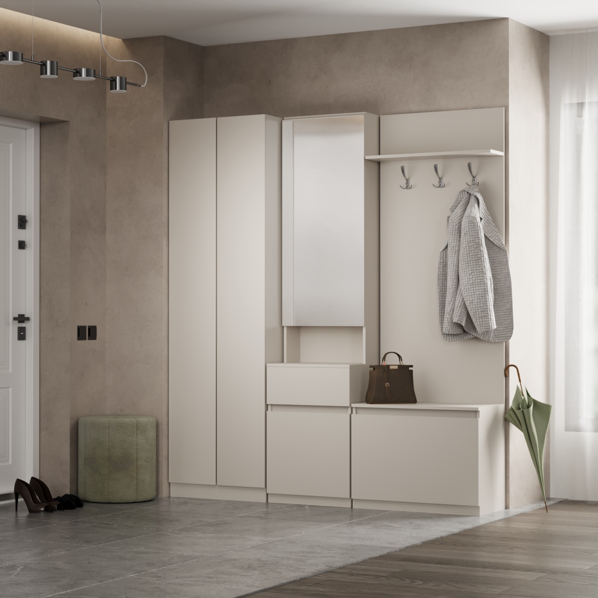 Модуль создан для организации пространства у входа и состоит из двух ключевых элементов: