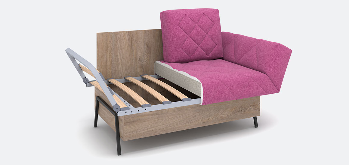 • · Легкая трансформация: Раскладывающиеся подлокотники и простой механизм «лит» позволяют варьировать габариты и легко создавать спальное место.