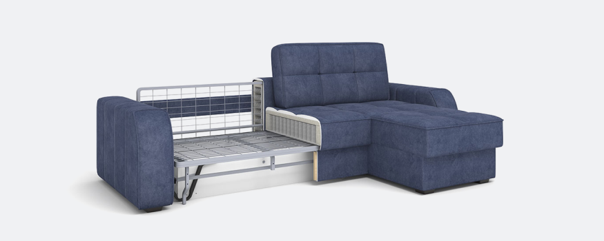 В основе модели — усиленный металлокаркас из конструкционной стали с увеличенной гарантией. Он рассчитан на повышенные нагрузки: до 200 кг на посадочное место и до 300 кг на спальное место.