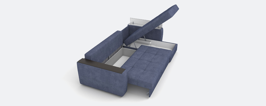 • Рекордное пространство для хранения: Модель решает проблему беспорядка с помощью 4 вместительных ящиков — в оттоманке, диванной секции и даже в двух подлокотниках. Это идеально для хранения постельного белья, подушек или сезонных вещей.