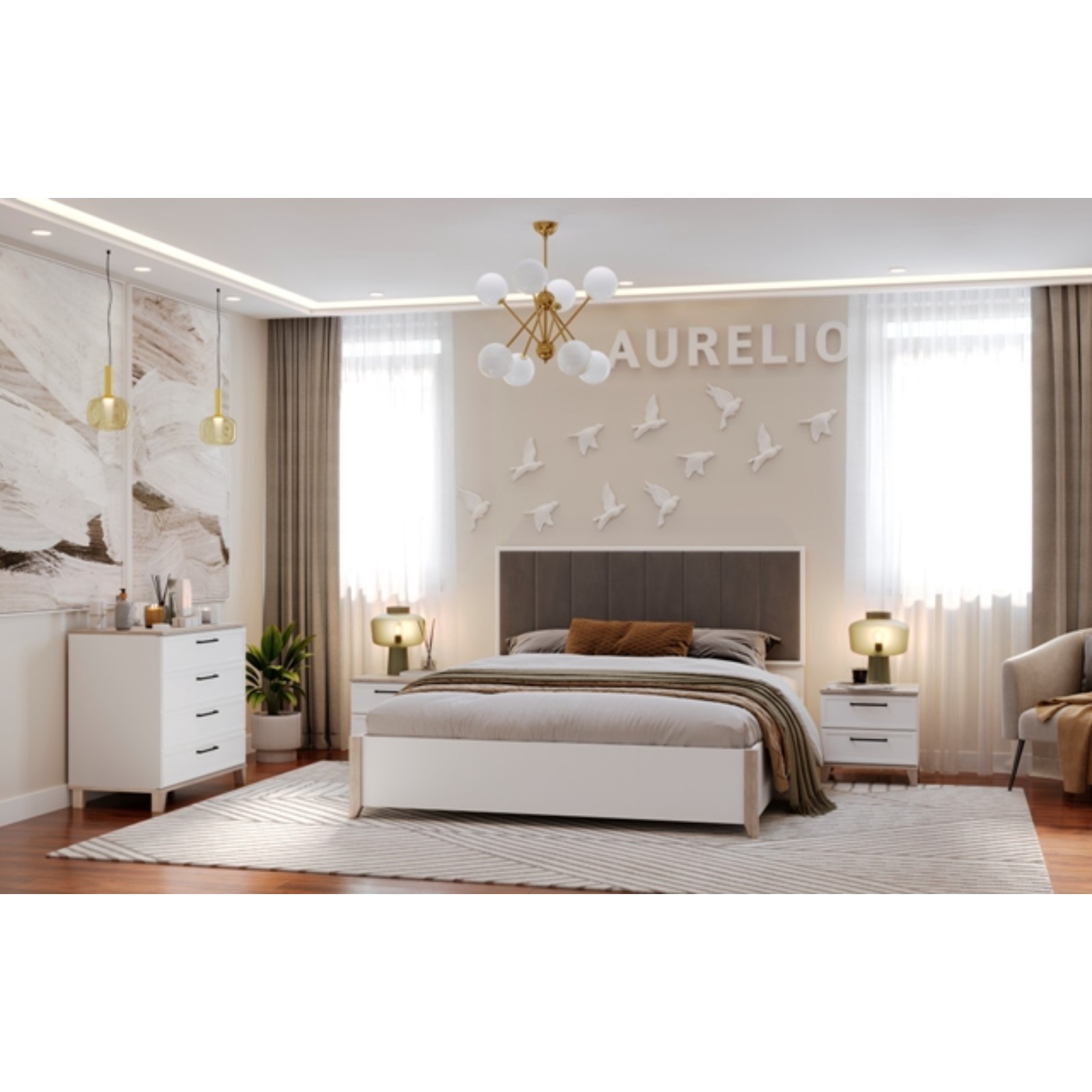 Модульная коллекция спальни «Aurellio» отличный вариант оформления как просторной, так и небольшой спальни. Она включает в себя различные модули, которые будут гармоничны для классического и молодежного интерьера. С данной модульной коллекцией легко создать не только стильное, но и максимально функциональное наполнение комнаты.