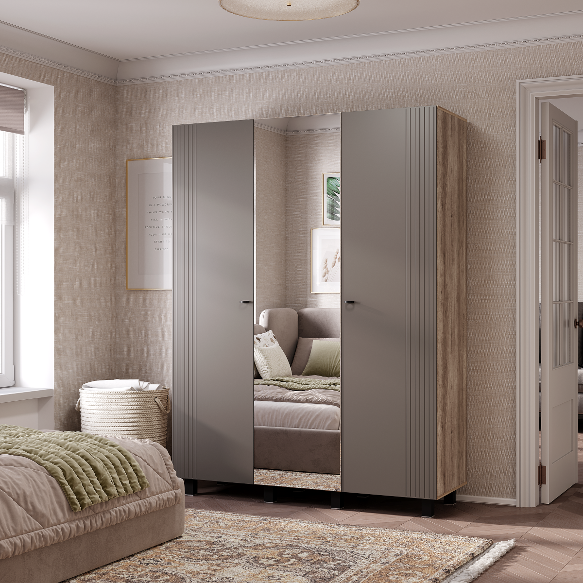 Шкаф 3-х створчатый Олива ШК-08 (1502х2016х514мм) дуб каньон / муссон софт MF14
