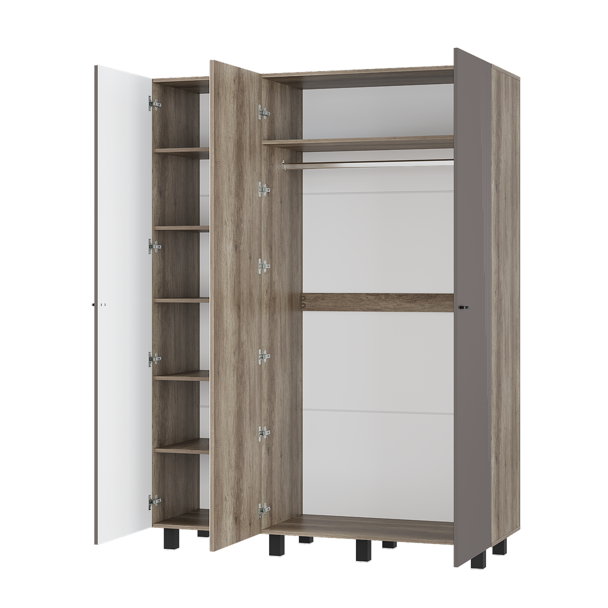 · Вместительность: Три створки, внутренние полки, штанга и ящики для разных типов одежды.