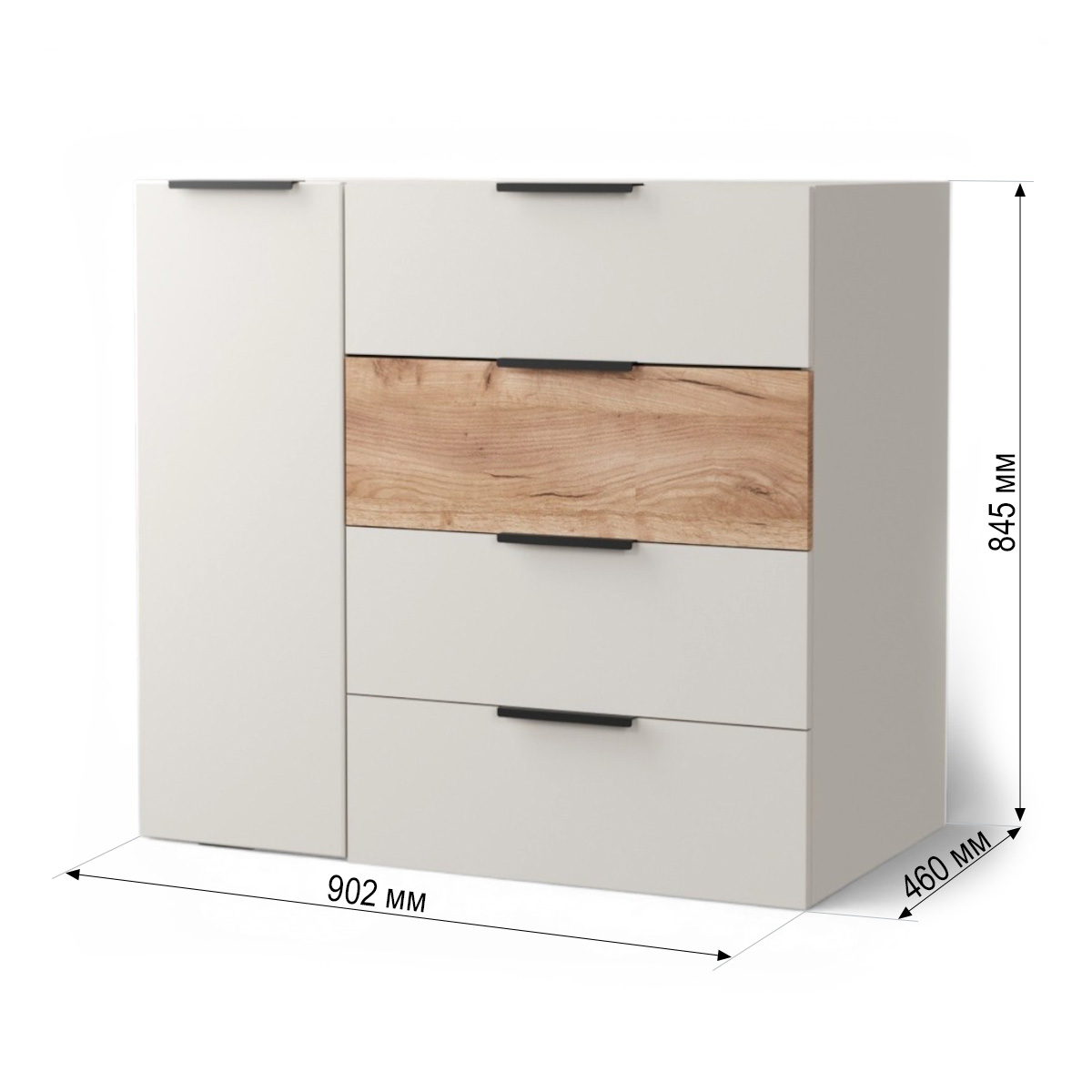 —Комод Севиль 1дв.4ящ./ Кашемир/Дуб крафт